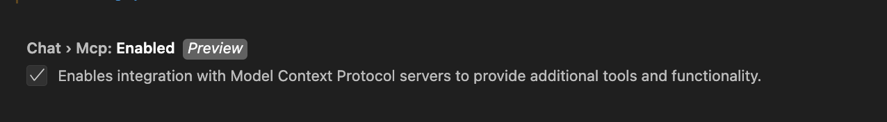 In settings.json we can define the MCP Server we'd like to use. There are also a few other settings, including enabling MCP.
